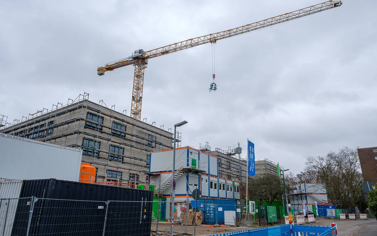 Oberbürgermeister Stephan Keller: "Durch den Neubau einer Gesamtschule an der Aldekerkstraße schaffen wir im Stadtteil Heerdt Unterrichtsplätze für rund 950 Schülerinnen und Schüler. Das Gebäude entsteht in einem beeindruckenden Tempo, sodass sich die ersten vier Schulklassen bereits ab August auf den Unterricht in den neuen modernen Räumen und der großen Dreifachsporthalle freuen können."