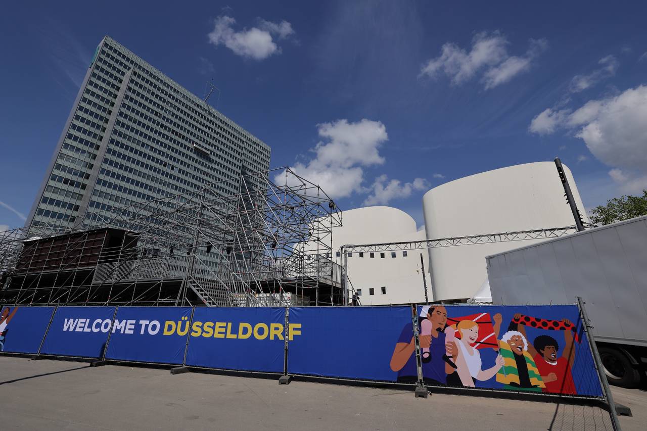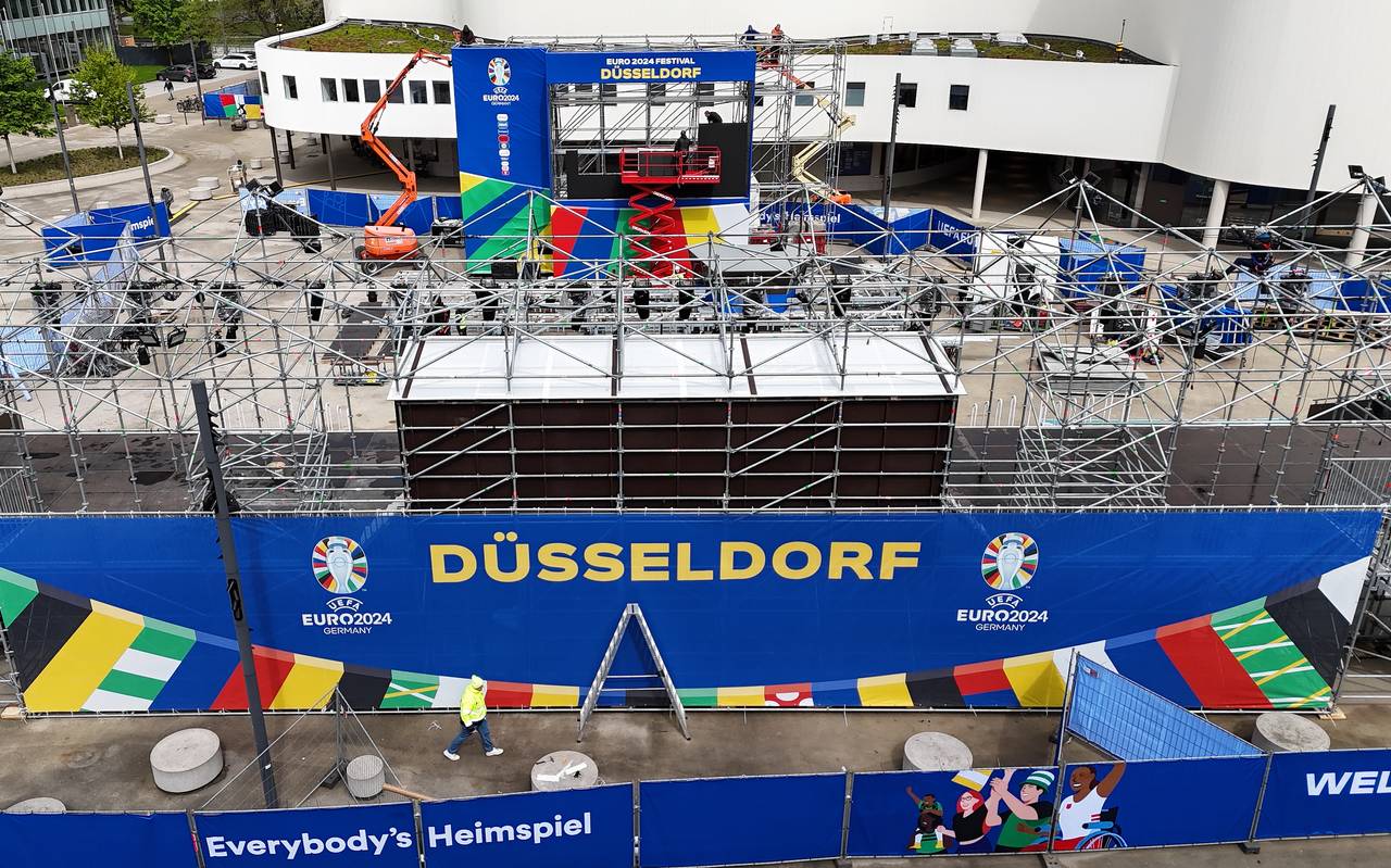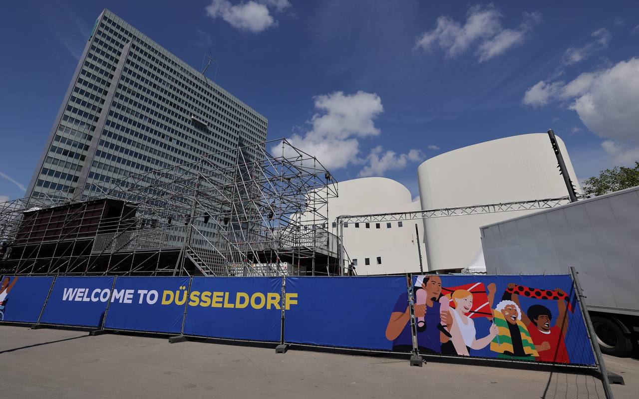 1. EM-Fanzone in Düsseldorf wird aufgebaut