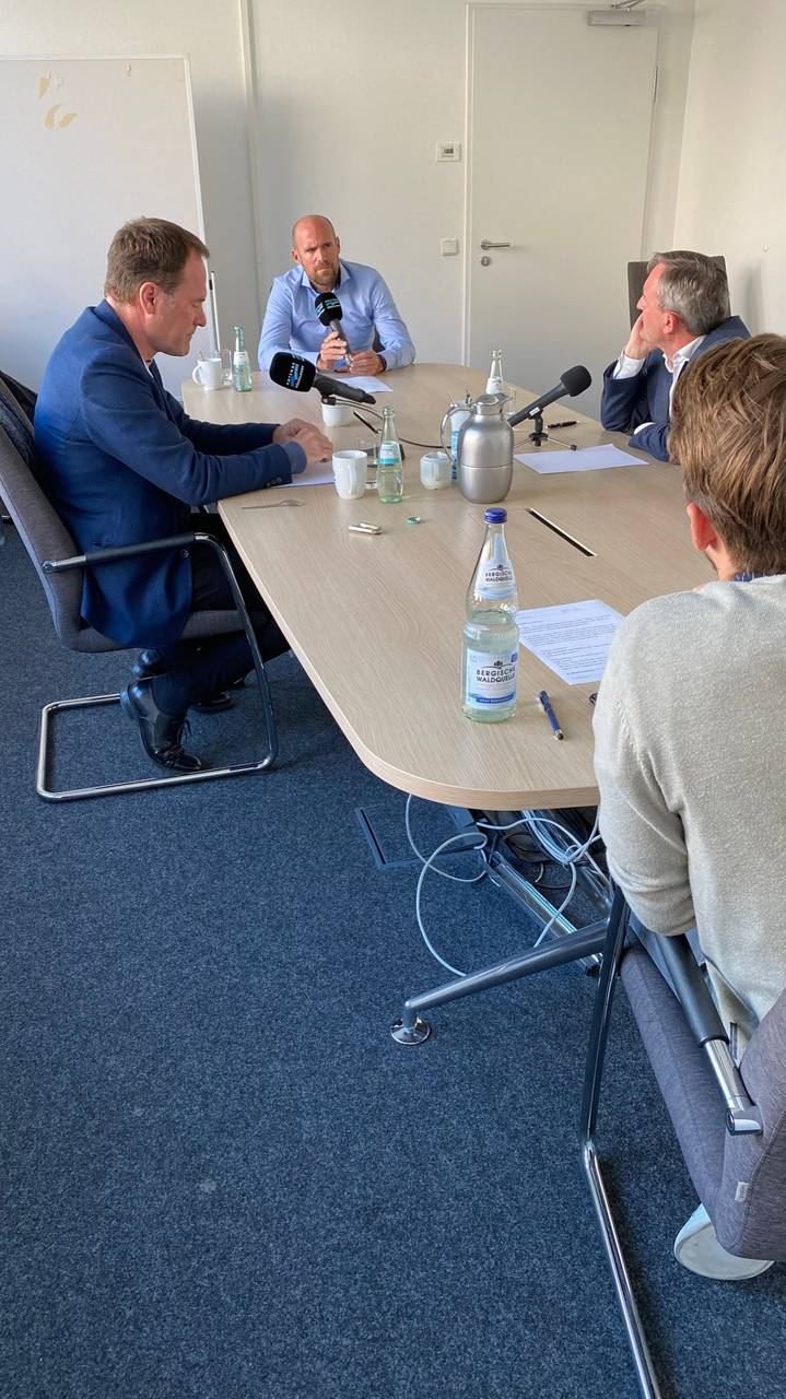 Die Antenne Düsseldorf Morgenmoderatoren Arne Klüh und Dennis Lieske im Gespräch mit mit Thomas Geisel (SPD) im "Himmel & Ähd".