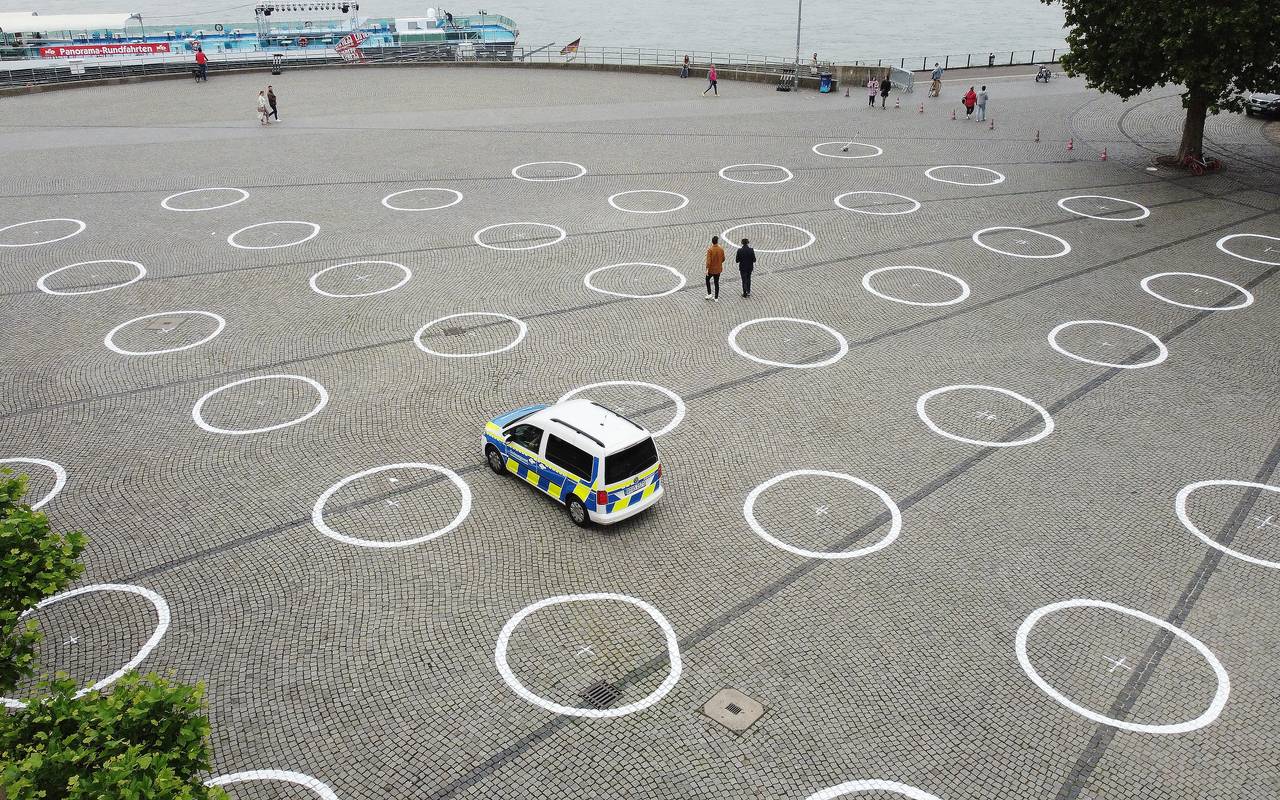 360 Kreise als Abstandsmarkierungen in Corona-Zeiten