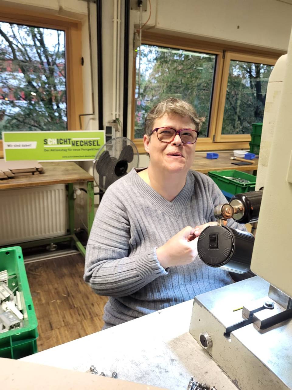 Letzte Woche (04. Oktober 2023) haben wir Lisa in der Werkstatt für angepasste Arbeit in Angermund besucht: