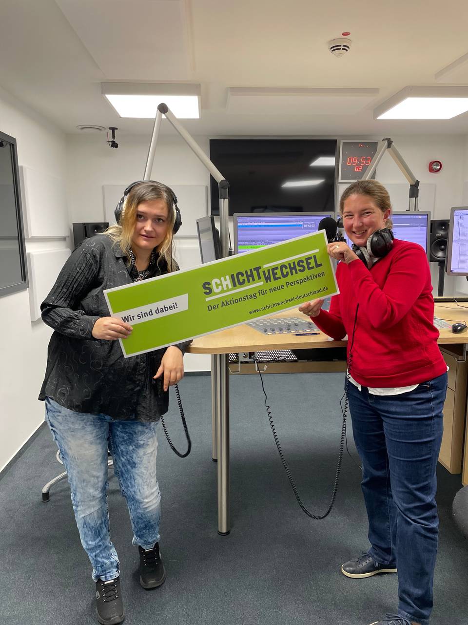 Am Aktionstag unterstützt sie Morgenmoderatorin Celina von Schweinichen bei der Moderation und schaut sich an, was beim Radio so los ist.