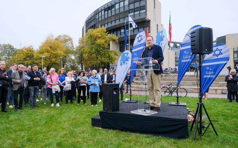 Oberbürgermeister Dr. Stephan Keller: "Die Landeshauptstadt Düsseldorf verurteilt antisemitische Parolen - gerade in der aktuellen Situation, in der wir alle fest an der Seite Israels stehen müssen - aufs Schärfste. Wir haben sofort Strafanzeige erstellt, der Staatsschutz ermittelt."