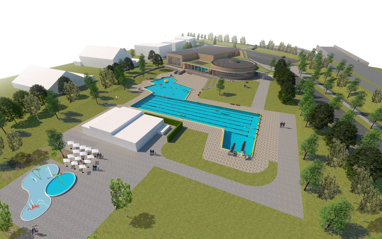 Das Schwimmbad wird auf dem Gelände des heutigen Freibads an der Regerstraße gebaut. Geplant ist ein 25-Meter-Sportbecken, ein Warmwasser- und ein Sole-Becken - also ein Becken, wo Mineralstoffe im Wasser sind. Im Freibadbereich ist zudem ein Kleinkinderbecken mit Wasserspielplatz geplant. Das neue Bad soll spätestens in zwei Jahren (2022) fertig sein.