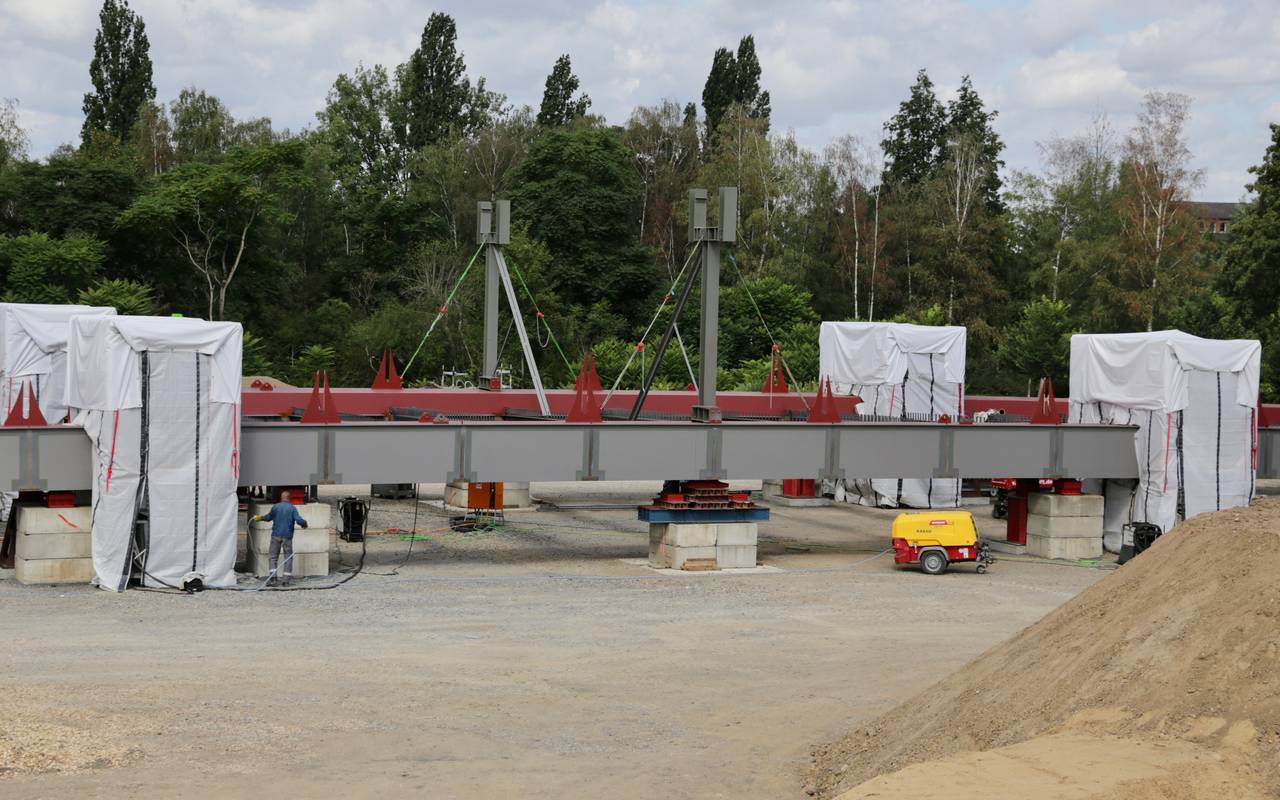 Wer am Wochenende in der Nähe des Heerdter Lohwegs unterwegs ist, muss mit Verkehrsbehinderungen rechnen, könnte aber auch ein aufregendes Schauspiel beobachten. Dort wird eine neue Brücke eingefahren.