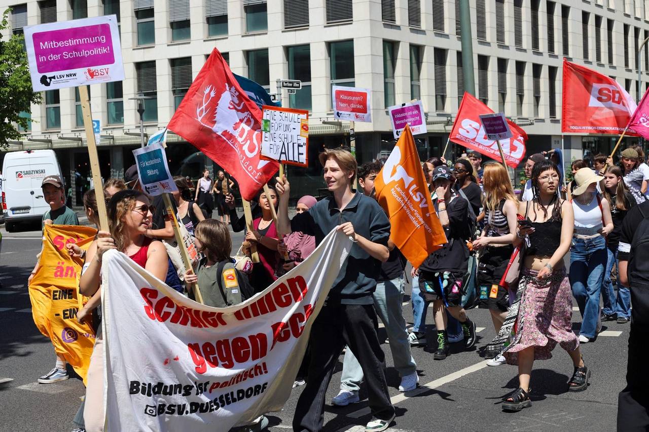 Die Landesschüler*innenvertretung NRW fordert kleinere Lerngruppen, die Abschaffung von Noten und mehr Mitbestimmung in den Schulen, aber auch die Sanierung von Schulklos oder Sportanlagen. Die Demonstration zum Bildungsprotest ist heute am Hauptbahnhof gestartet. Von dort sind die Teilnehmenden über die Kö bis zum Fürstenplatz gelaufen. Laut der Landesschüler*innenvertretung und Polizei waren rund 200 Schülerinnen und Schüler dabei. Größere Einschränkungen für den Verkehr gab es demnach nicht.