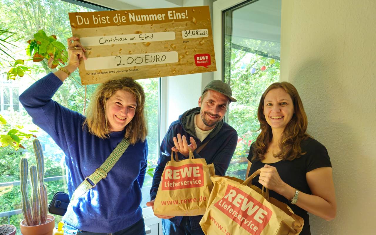 Christiane gewinnt den REWE Lieferservice-Hauptpreis
