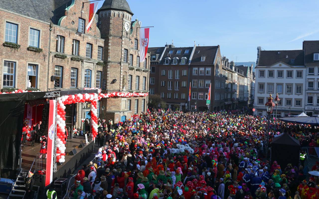 Man hoffe auf viele "mitstürmende" Möhnen. Am Rathaus ist Musik- und Bühnenprogramm ab 10.45 Uhr: Um kurz nach 11 spielen Michael Hermes und Band zum Beispiel das Mottolied - nach dem Rathaussturm treten unter anderem die Swinging Funfares, die Rhytmussportgruppe und die Werstener Music Company auf. Wegen des angekündigten Regens könnte sich das Geschehen aber auch schnell in die Kneipen verlagern - viele Hausbrauereien etwa öffnen schon jetzt in den Morgenstunden.