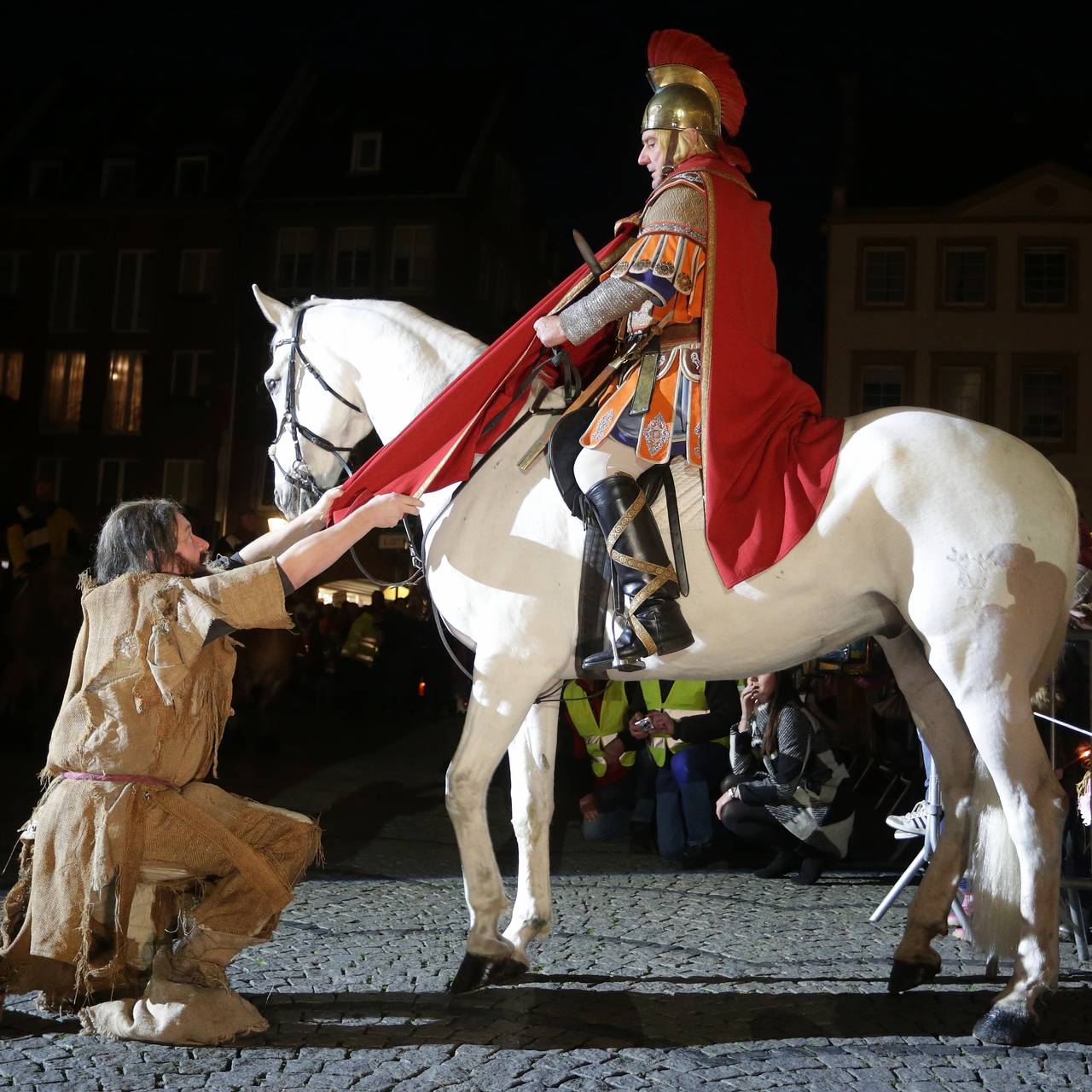 Zwei Kapellen und drei Herolde starten am Donnerstag, den 10. November 2022 um 17 Uhr, am Stiftsplatz und ziehen über Lambertusstraße und Mühlenstraße zum Marktplatz. Gegen 17.30 Uhr ist dort dann die erste Mantelteilung zu erleben. Danach geht es rund um den Carlsplatz und über die Mittelstraße und "Rheinort" weiter zum Burgplatz, wo gegen 18 Uhr die zweite Mantelteilung stattfinden wird. Anschließend löst sich der Zug auf. Die Darstellung der Rolle des St. Martin liegt wieder in bewährten Händen. Als St. Martin reitet Engelbert Jäger (68) im Zug.