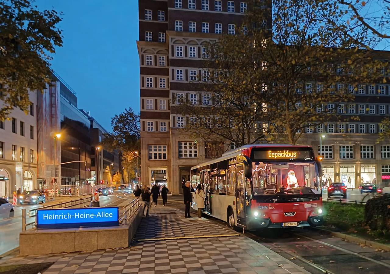 Shoppingbegeistere können ihr Auto in der Garage lassen und brauchen trotzdem keine schweren Taschen durch die Stadt zu schleppen – sie können alles im kostenlosen Gepäckbus abgeben und unbeschwert bummeln, während die Rheinbahn-Mitarbeitenden auf ihre Tüten und Taschen aufpassen. So können die Kundinnen und Kunden weiter entspannt das nächste Weihnachtsgeschenk suchen oder einen Glühwein auf dem Weihnachtsmarkt genießen. Der Gepäckbus hat einen neuen Standort: Er steht auf der Hunsrückenstraße, an der Kreuzung Flinger Straße, inmitten vieler Einkaufsmöglichkeiten. Der Gepäckbus ist an allen vier Adventssamstagen (2., 9. 16. und 23. Dezember) von 12 bis 21:15 Uhr vor Ort.