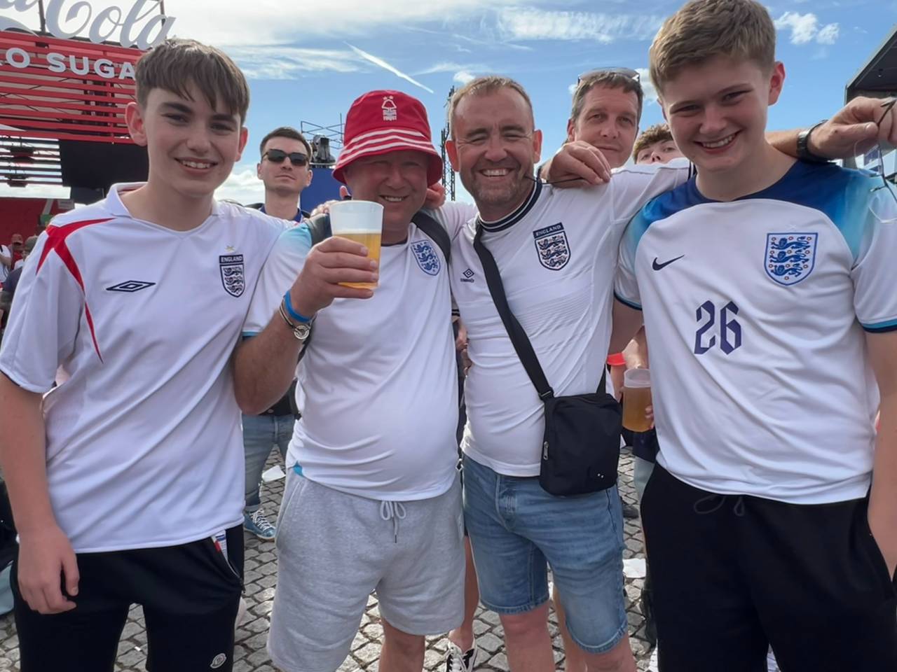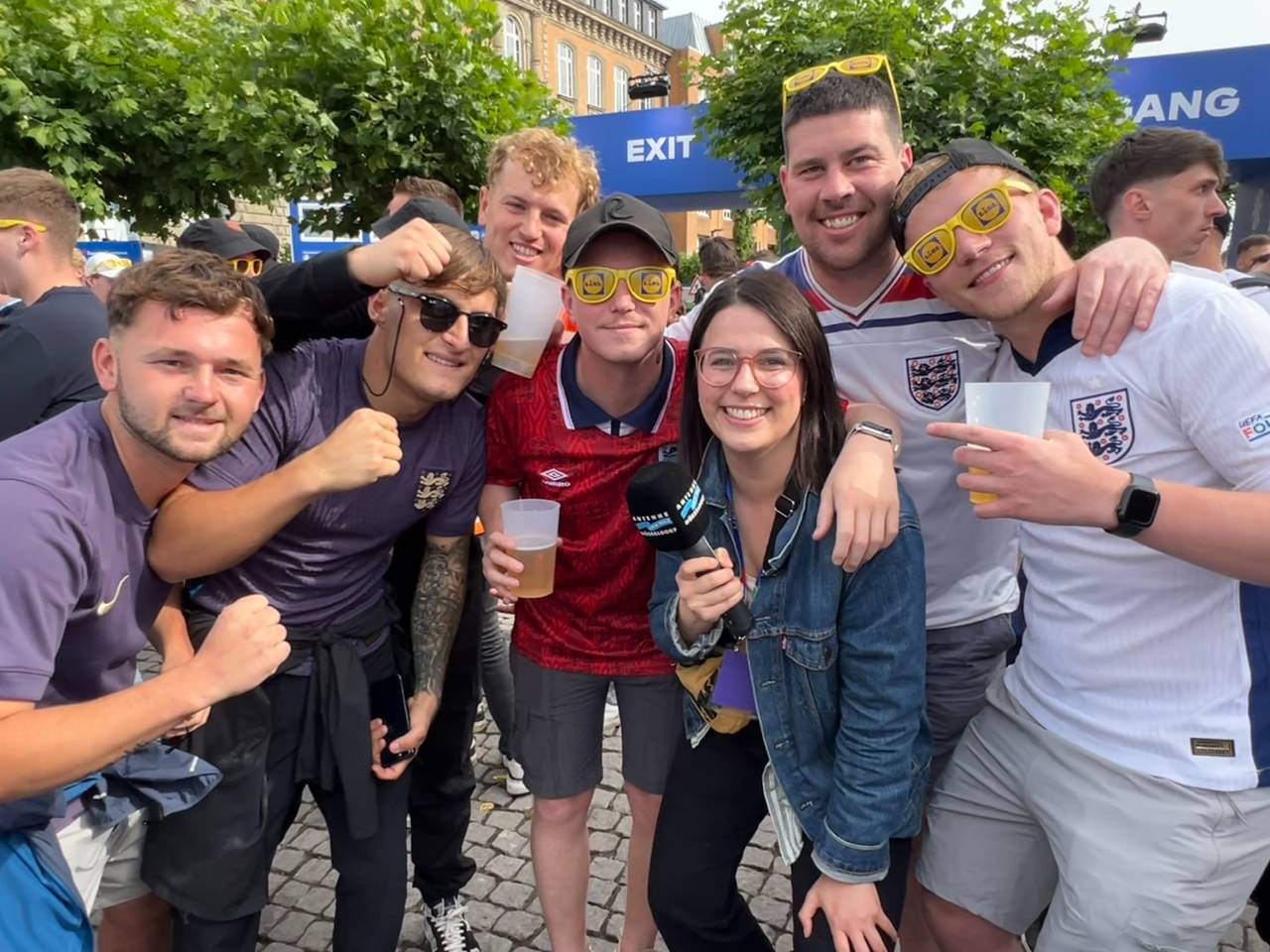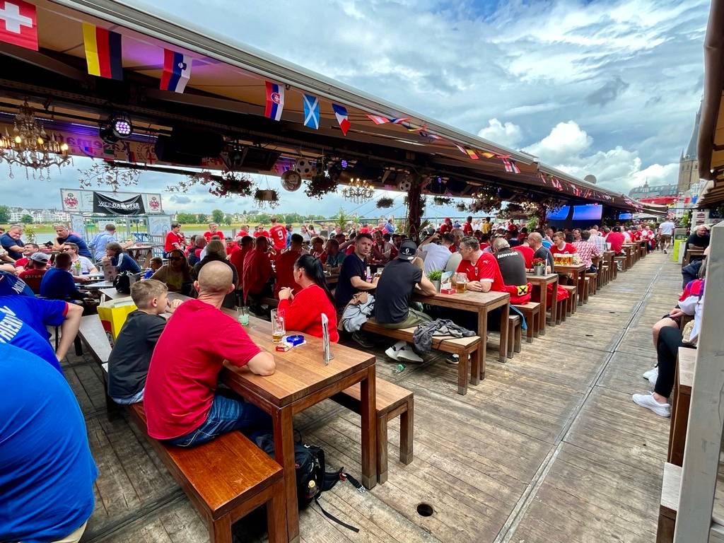 Am vergangenen Samstag (6. Juli 2024) konnten wir dann das letzte der fünf Spiele in unserer Arena und in den Fanzonen der Stadt verfolgen. England hat sich im Viertelfinale gegen die Schweiz am Ende im Elfmeterschießen durchsetzen können. Schon lange vor dem Spiel haben die englischen Fans ausgelassen gefeiert:
