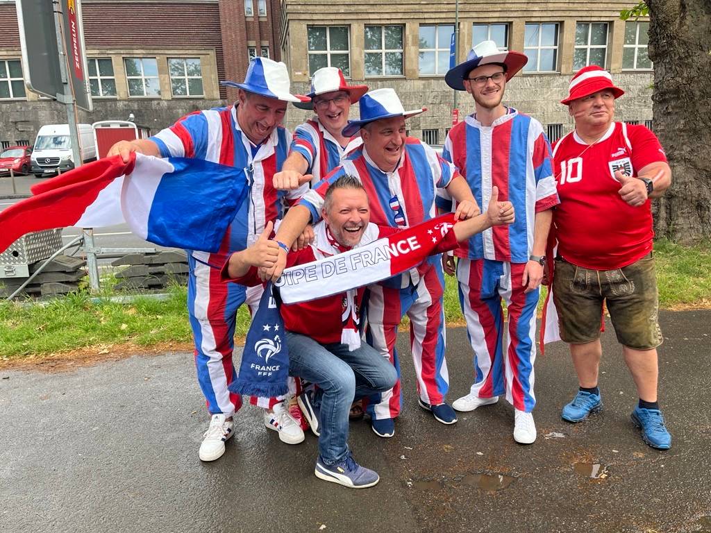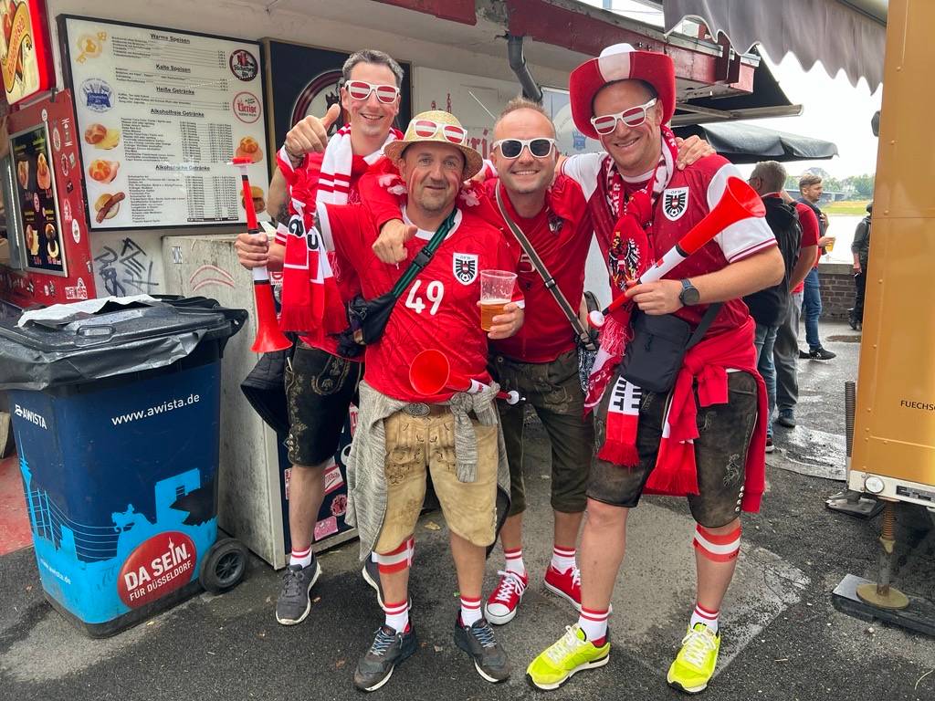 Das erste EM-Spiel in der Düsseldorfer Arena wurde von Österreich und Frankreich bestritten. Schon Stunden vor Anpfiff der Partie hatten sich die französischen und österreichischen Fans auf das Spiel eingestimmt: Rund 5.000 österreichische Fans feierten im Rheinpark in Golzheim zusammen, um von da aus in einem Fanmarsch Richtung Stadion zu laufen. Bei den Franzosen ging es am Aquazoo los. Laut Polizei waren es hier rund 8.000 Fans.