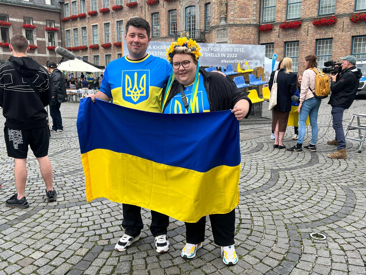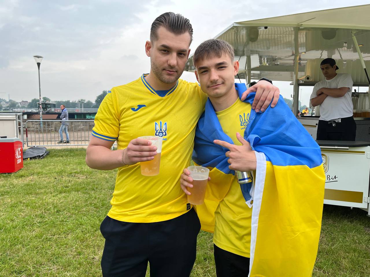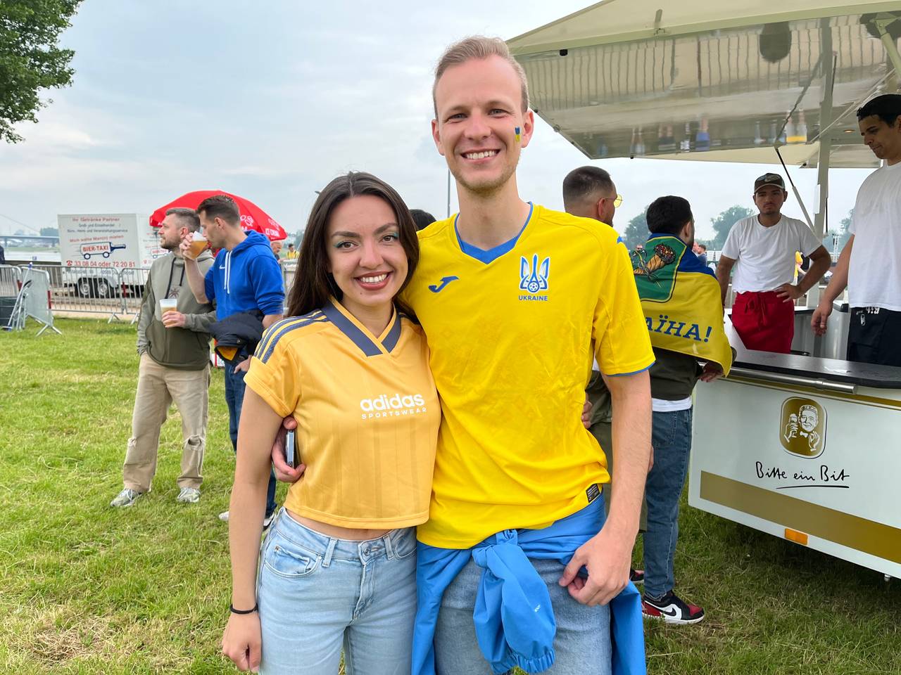 Nach einem Rückstand hat die Ukraine das Spiel am Ende doch noch mit 2:1 gewonnen. Die Stimmung bei den ukrainischen Fans nach dem Spiel war daher ziemlich gut: