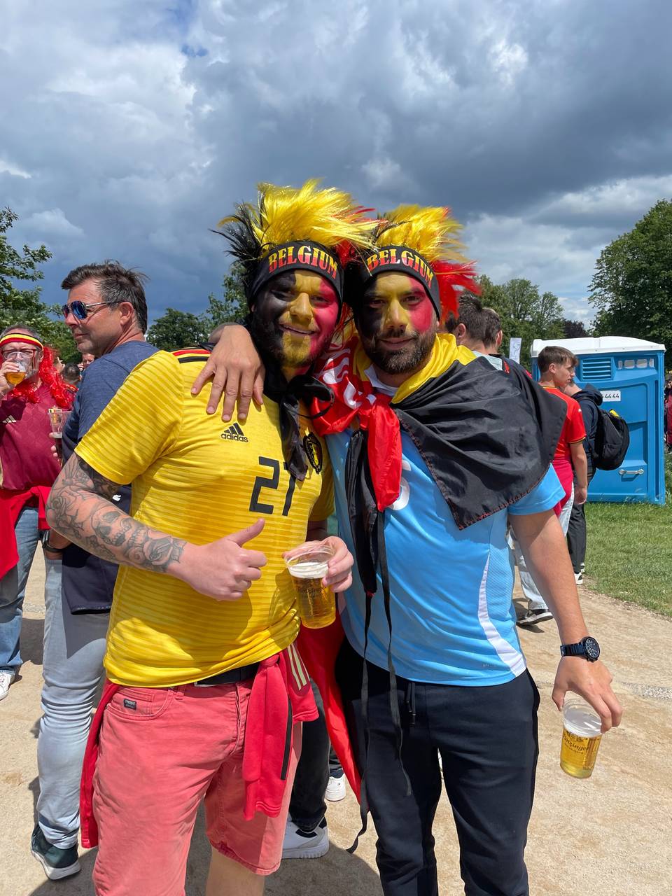 Wie schon bei dem Spiel gegen Österreich trafen sich die französischen Fans vor dem Aquazoo, um von da aus gemeinsam Richtung Stadion zu laufen. Für die Belgier startete der Fanmarsch am Rheinpark in Golzheim.