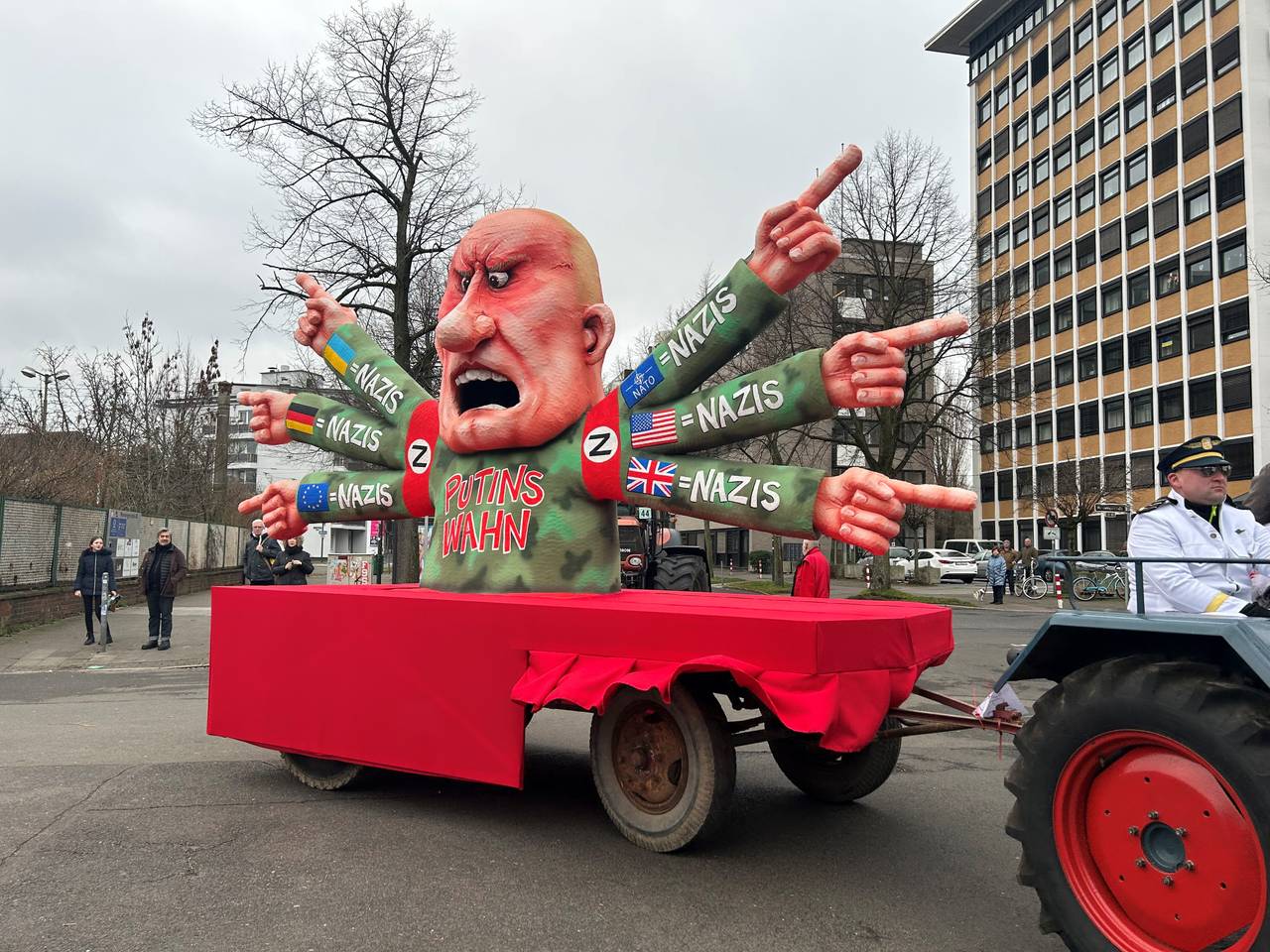 Auch in diesem Jahr ist der Rosenmontagszug hochpolitisch. Insgesamt 12 satirisch, bissige Motive wurden von Wagenbauer Jacques Tilly entworfen.