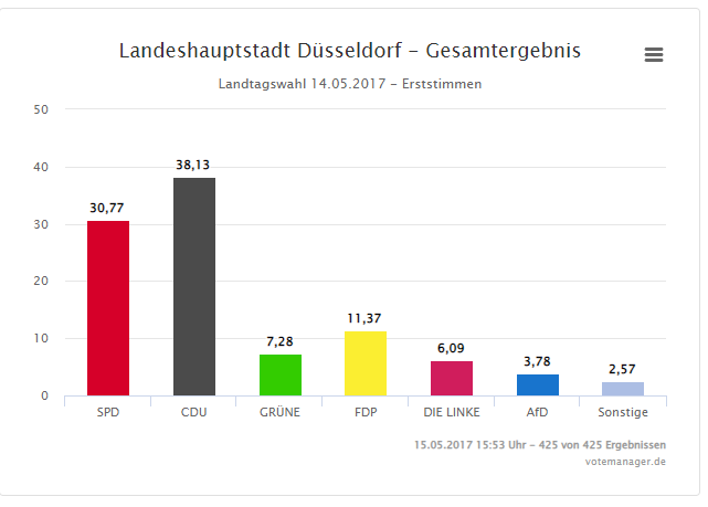 Eine ausführliche Auswertung der Landtagswahl 2017 hier in Düsseldorf gibt es auf dieser Seite: So hat Düsseldorf 2017 gewählt.