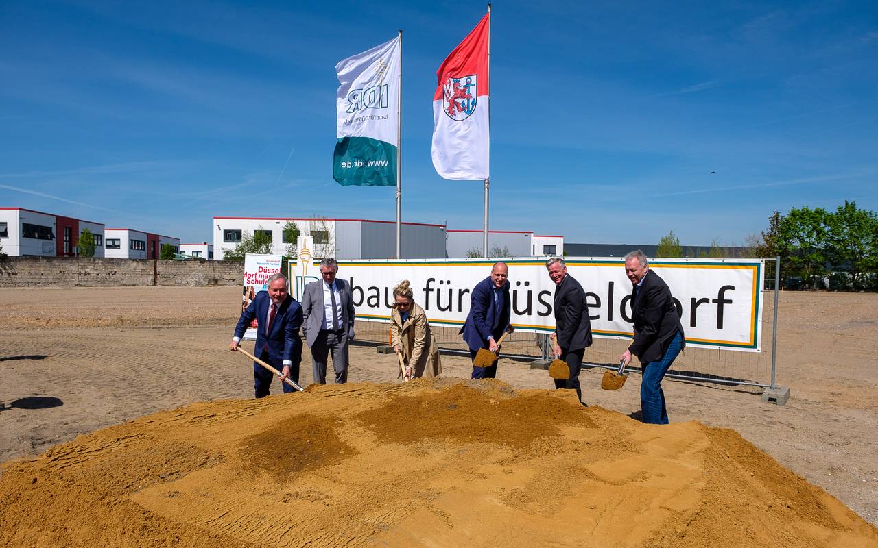 In Benrath läuft seit gestern (03. Mai 2023) das große Bauprojekt "Benrather Rochade". Auf einer Brachfläche an der Benrodestraße / Ecke Marbacher Straße entstehen zwei neue Schulgebäude für das Schloss-Gymnasium und die Realschule Benrath. Gestern gab es den ersten Spatenstich.