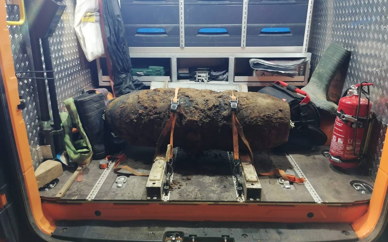 Die Mitarbeiter des Kampfmittelräumdienstes haben heute (26. Oktober 2023) wieder ganze Arbeit geleistet. Sie haben eine britische Fünf-Zentner-Fliegerbombe aus dem 2. Weltkrieg erfolgreich entschärft. Der Blindgänger war bei Bauarbeiten auf der Lacombletstraße gefunden worden.