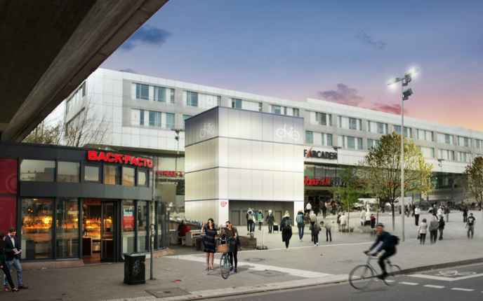 Der Fahrradturm vor den "Düsseldorf Arcaden" wird definitiv nicht gebaut. Das hat Verkehrsdezernent Kral jetzt im Rathaus bestätigt. Stattdessen sollen jetzt alternative Abstellkonzepte erarbeitet werden. Dazu werden derzeit Gespräche mit der Deutschen Bahn geführt.