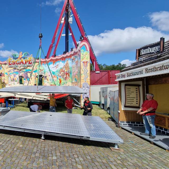 Bilder vom Aufbau der Rheinkirmes 2023