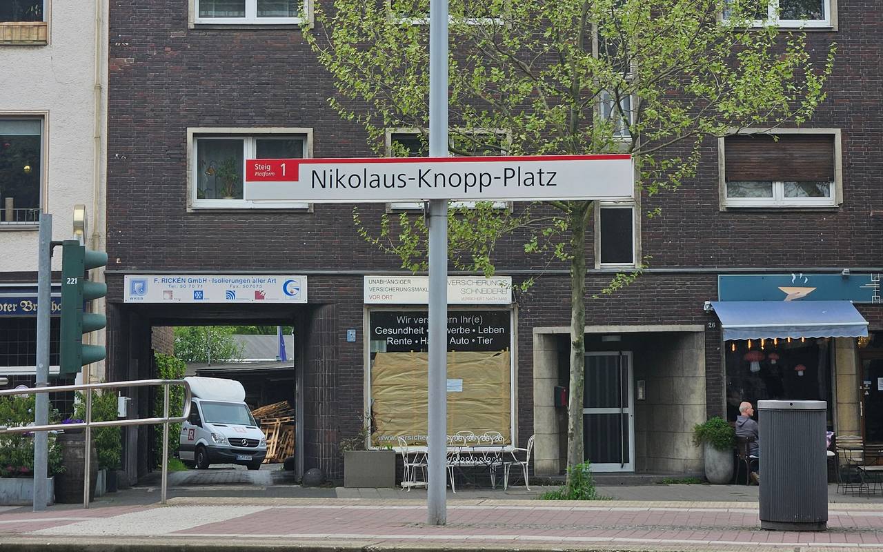 Rund um den Nikolaus-Knopp-Platz findet das Leben statt: hier gibt es Cafés, Restaurants und viele Wohngebäude.