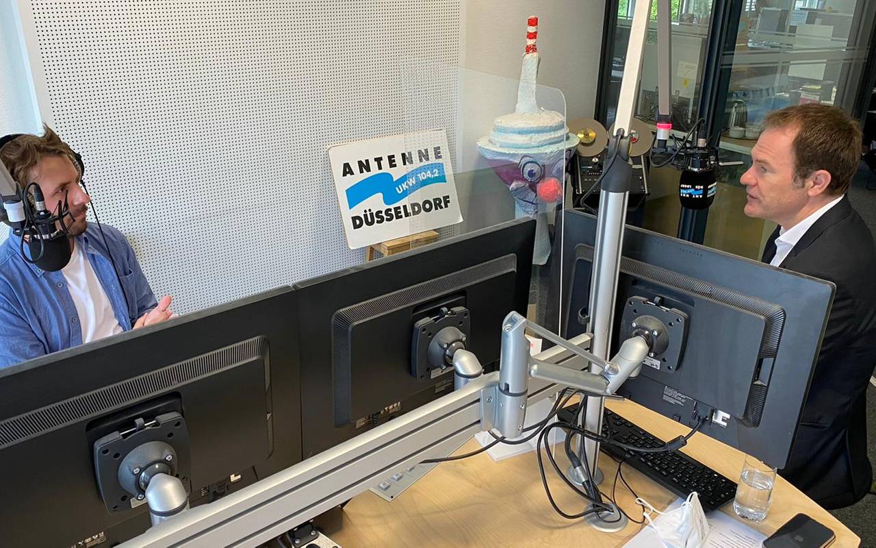 Über verschiedenste Kanäle (Homepage, Instagram & Facebook) habt ihr uns Fragen geschickt, die wir Oberbürgermeister Stephan Keller stellen sollen. Der OB war heute (9. Juli 2021) bei uns zu Gast und hat im Studio-Interview mit Arne Klüh auch über die aktuelle Corona-Lage in Düsseldorf berichtet.