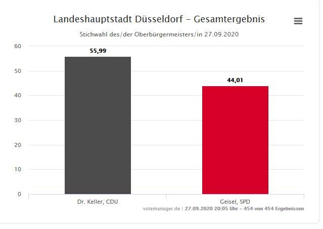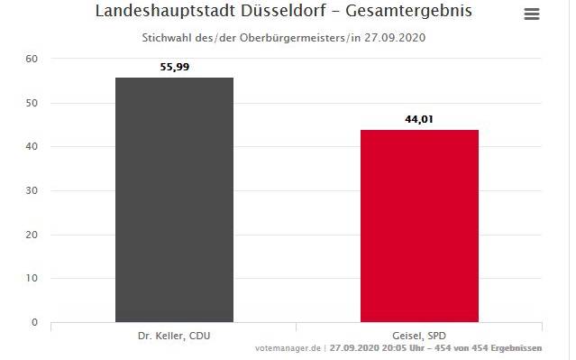 Düsseldorf hat bei der Stichwahl für den Wechsel gestimmt. Nach sechs Jahren im Amt istThomas Geisel (SPD) abgewählt worden. Stephan Keller (CDU) ist zum neuen Oberbürgermeister gewählt worden.