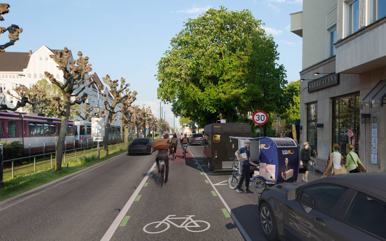 Zwei Radwege und Tempo 30: Dadurch soll die Luegallee aufgewertet werden. Die Stadt möchte die Aufenthaltsqualität dort verbessern. Auch soll es dadurch in Zukunft weniger Konflikte im Straßenverkehr geben. Mittlerweile nutzen täglich über 1.300 Radfahrende die Luegallee. Für Autos sei dort außerdem jeweils eine Spur ausreichend, heißt es aus dem Rathaus. Der Test soll schon ab Mai von einer groß angelegten Befragung begleitet werden; sowohl online als auch vor Ort. Ab Juni wird es dort auch Verkehrszählungen geben.