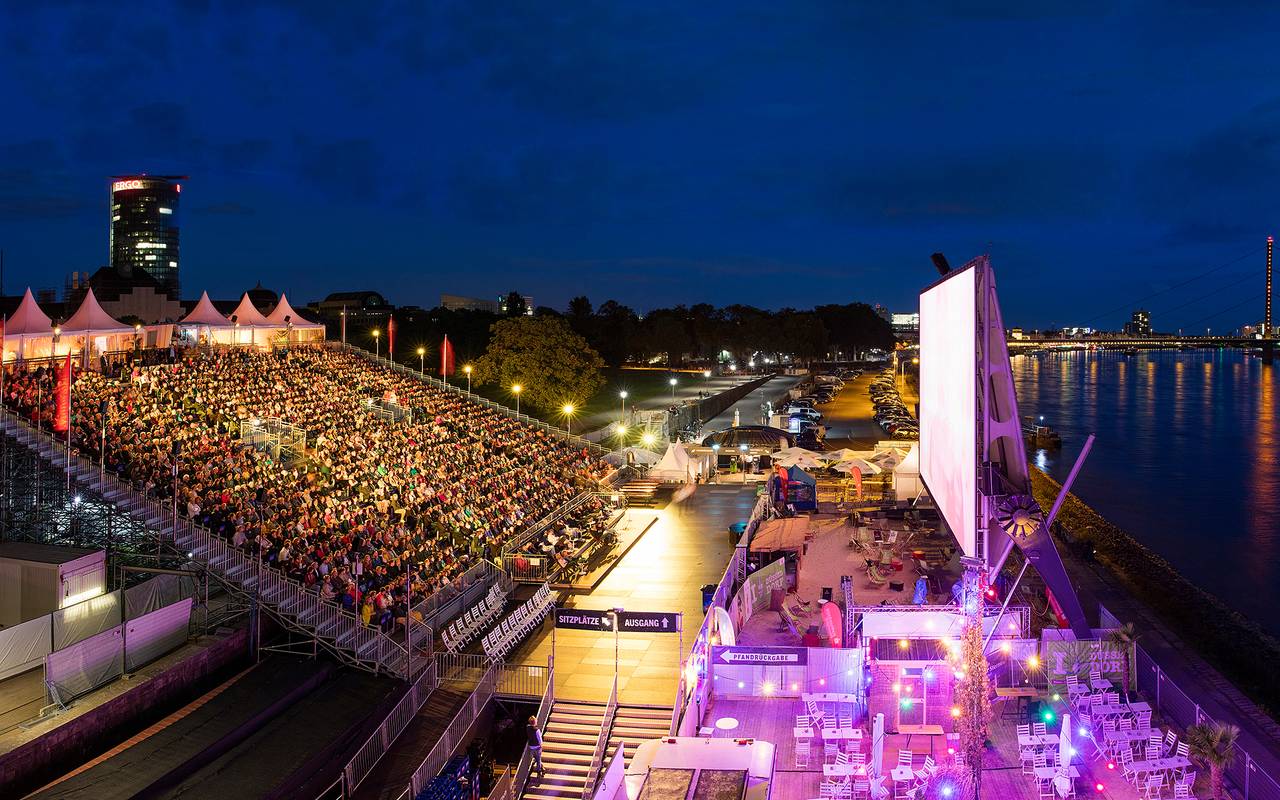 In das Open-Air-Kino am Rhein kommen weniger Besucher*innen als erwartet. Das hat der städtische Veranstalter D.LIVE mitgeteilt. Zum einen sei das wolkige und regnerische Wetter ein Grund, zum Anderen die Corona-Auflagen.