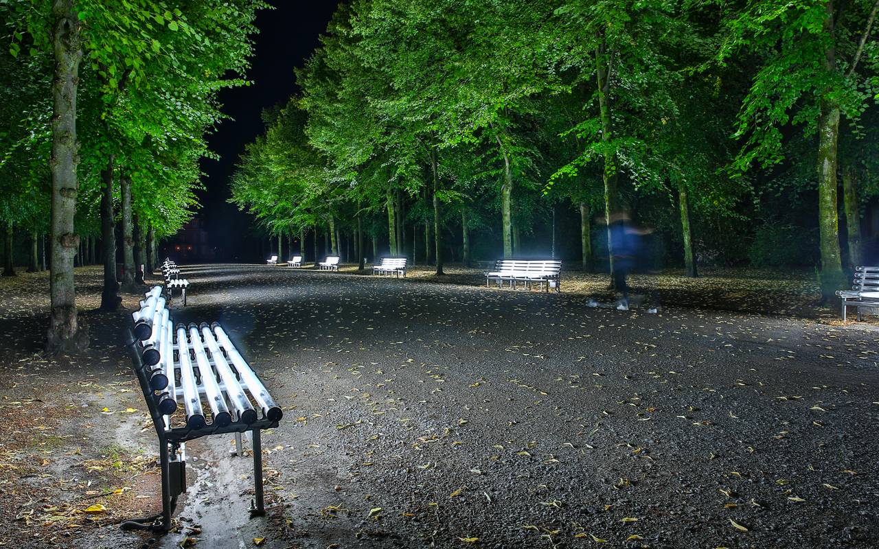 Die Beleuchtung soll die Tiere im Hofgarten nicht stören, in der zweiten Nachthälfte werden die Bänke außerdem abgeschaltet. Sie wurden zur Gartenschau vor 20 Jahren erstmals im Hofgarten aufgestellt, zunächst als Provisorium gedacht. Dann waren die Lichtbänke aber so beliebt, dass die Stadt sie dauerhaft gekauft hat.