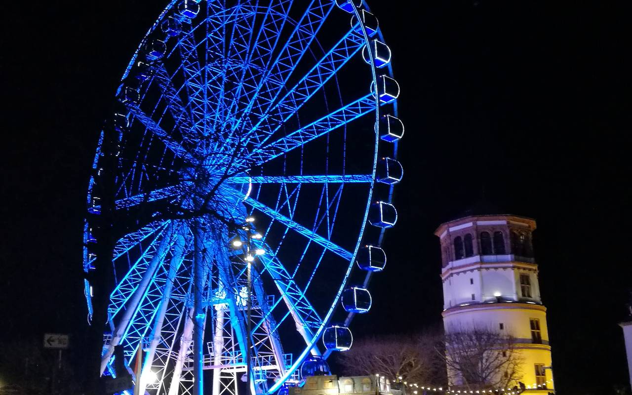 Ab nächster Woche Samstag (17. Oktober) können wir Düsseldorf vom Burgplatz aus wieder von oben sehen. Ab dann drehen sich die Gondeln des weißen Riesenrads wieder, das dort inzwischen im Herbst und Winter zu einem neuen Düsseldorfer Wahrzeichen geworden ist. Der Aufbau beginnt bereits heute. Im Laufe des Tages kommen die großen LKW mit den Bestandteilen des Riesenrads an - Eine Woche dauert der Aufbau.