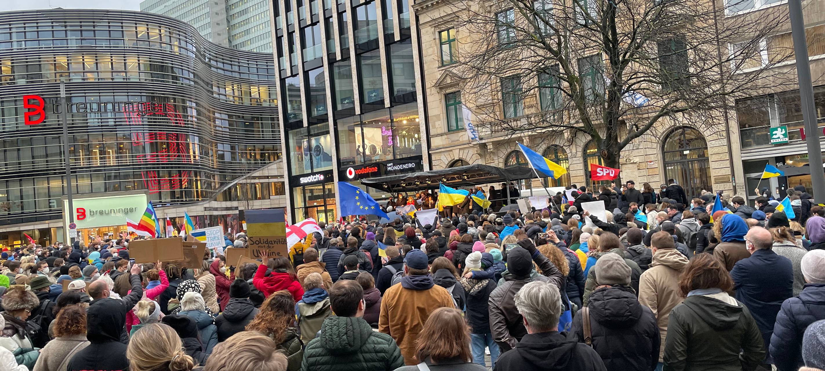 Eine weitere Kundgebung ist morgen (26. Februar 2022) erneut auf dem Schadowplatz geplant - organisiert von der ukrainischen und belarussischen Community hier in der Stadt.