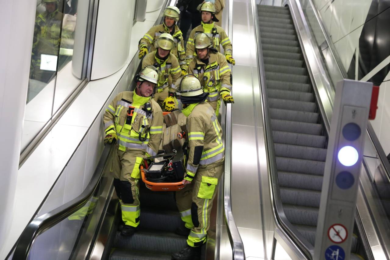 Feuerwehr und Rheinbahn üben aktuell in der U-Bahn