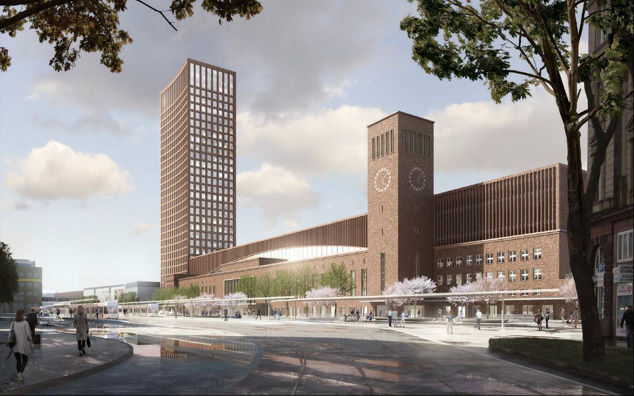 Die CDU stört sich an der Planung für das Bahnhofsgebäude, auf das mehrere Stockwerke obendrauf gesetzt werden sollen. Aktuell läuft in der Brücke des Theaters Central am Hauptbahnhof eine Ausstellung mit den aktuellen Entwürfen (bis 12. September). Dabei wird auch ein Umbau des Bahnhofsgebäudes gezeigt.