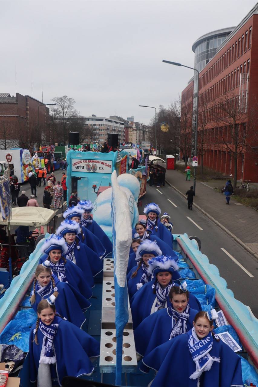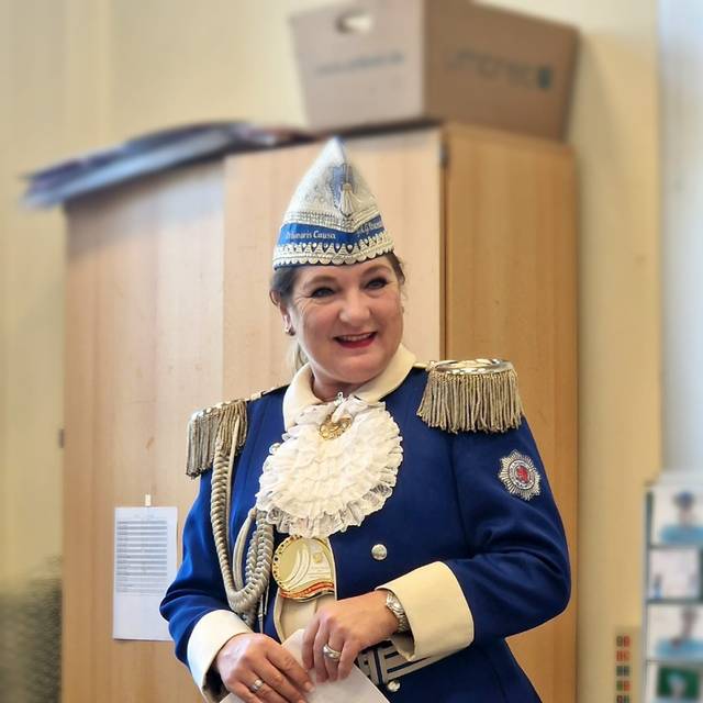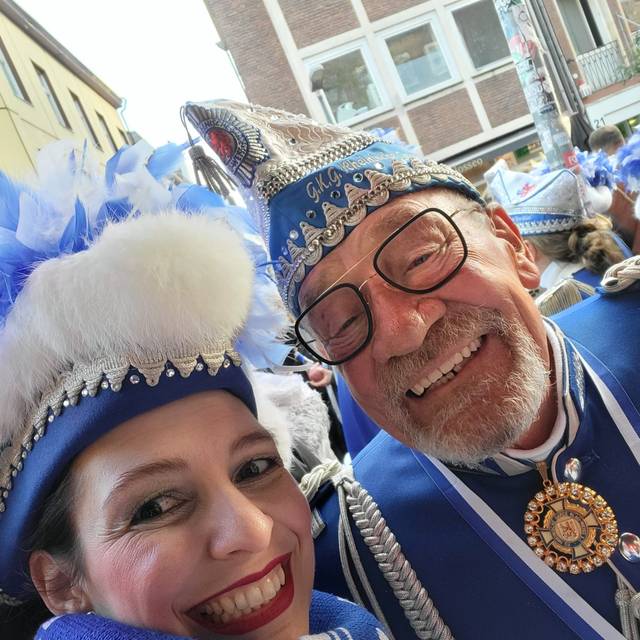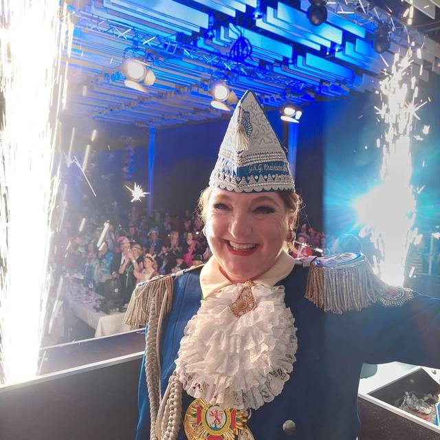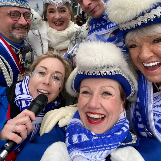 Eine Besonderheit gibt es: Damit sie auch ein bisschen Rosenmontags-Feeling spüren kann, fährt ihr Verein mit dem Prunkwagen schon seit einigen Jahren immer an letzter Stelle im Zug. Janine kann nämlich dann am Rathaus nach ihrer Arbeit als Moderatorin auf den Wagen aufsteigen und den Rest des Zuges feiern. Immer nach dem Motto: Das Beste kommt zum Schluss.