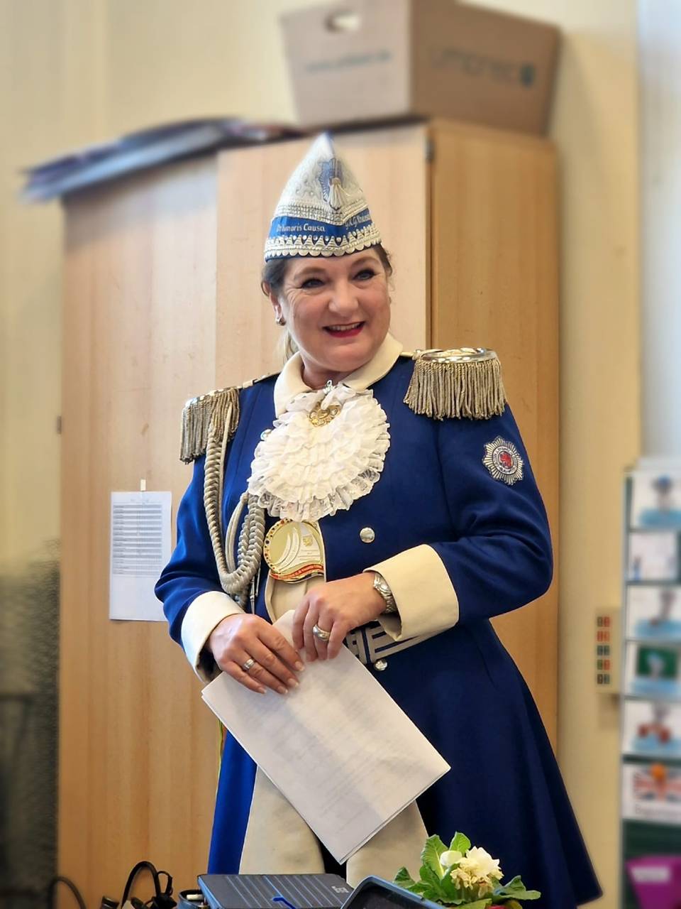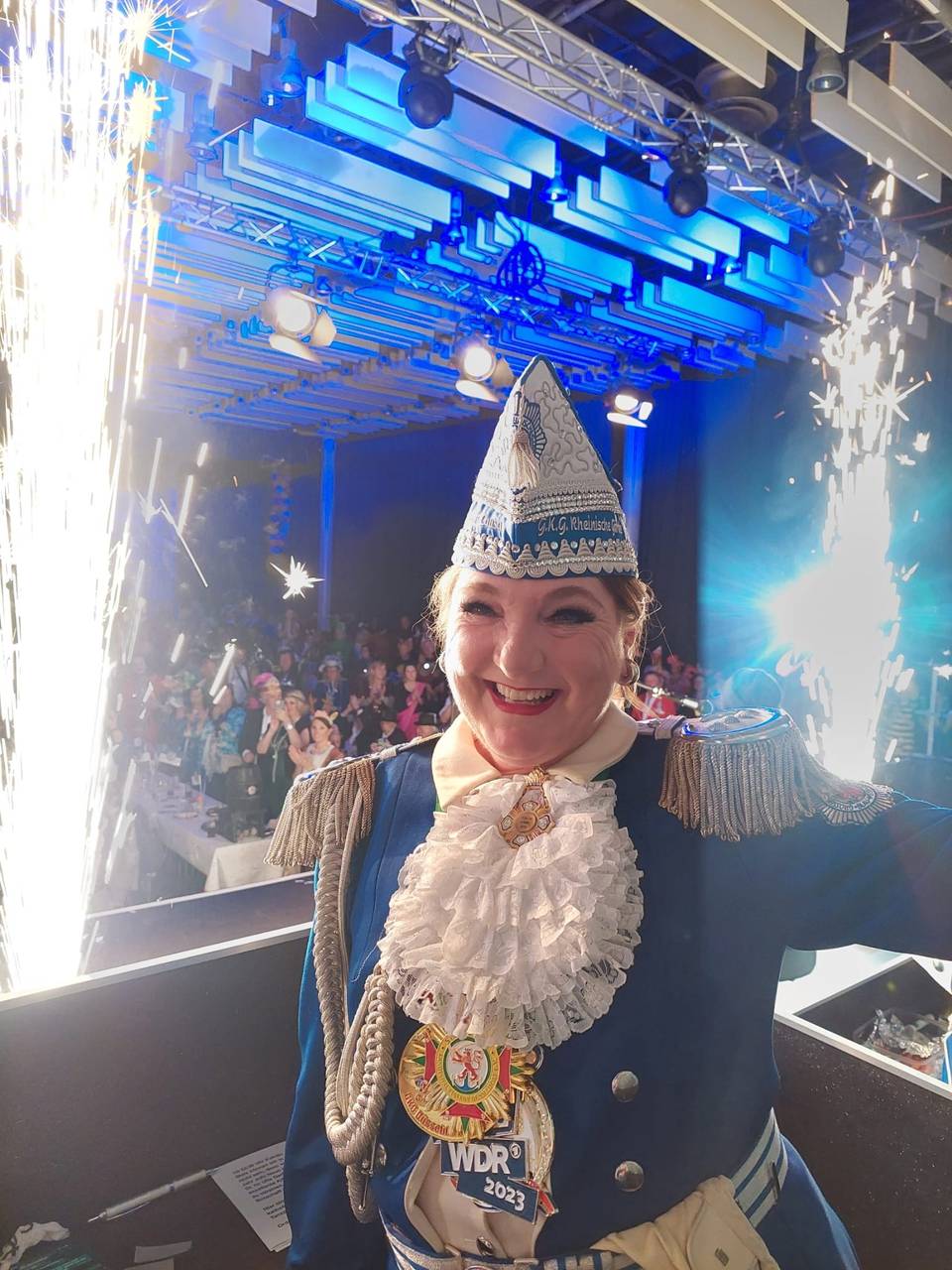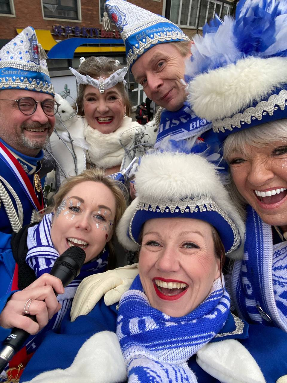 Eine Besonderheit gibt es: Damit sie auch ein bisschen Rosenmontags-Feeling spüren kann, fährt ihr Verein mit dem Prunkwagen schon seit einigen Jahren immer an letzter Stelle im Zug. Janine kann nämlich dann am Rathaus nach ihrer Arbeit als Moderatorin auf den Wagen aufsteigen und den Rest des Zuges feiern. Immer nach dem Motto: Das Beste kommt zum Schluss.