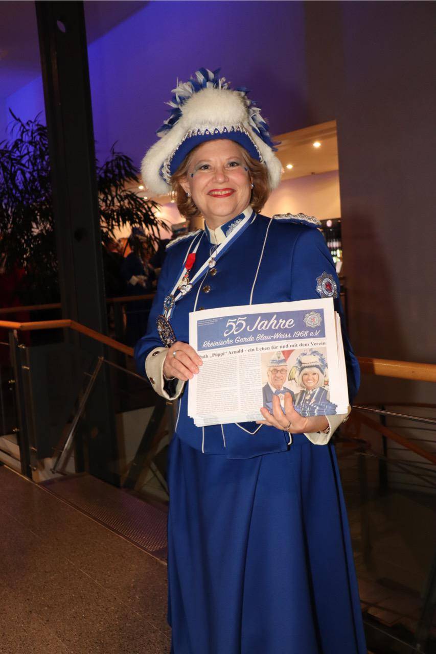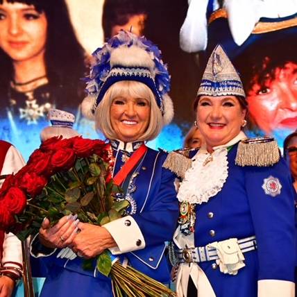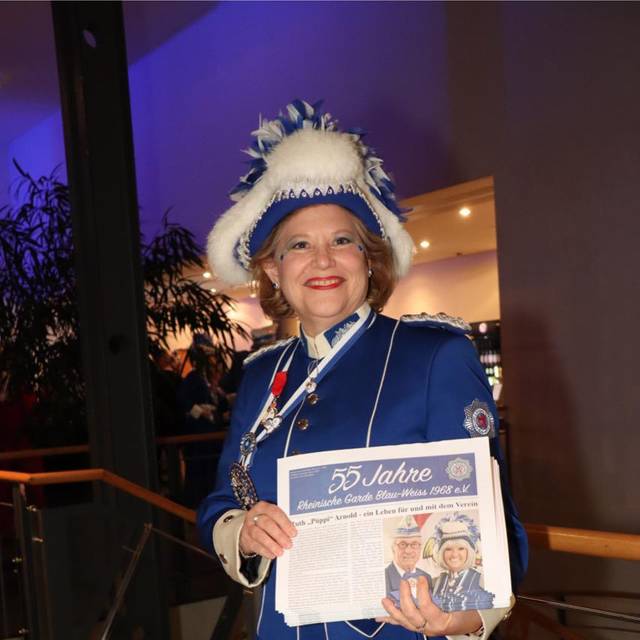 Immer mit dabei war Gründungsmitglied Ruth „Püppi“ Arnold, Tochter von Hermann Opfinger, der mit ihr zusammen im Jahr 1968 die Rheinische Garde gegründet hat. Eines ihrer 3 Kinder, nämlich Janine, ist heute die Präsidentin und 1. Vorsitzende des Vereins. Janine, die Venetia der Landeshauptstadt Düsseldorf von 2010, führt den Verein seit 2012 mit viel Herzblut und nicht zu stoppendem Engagement. Außerdem moderiert sie seit vielen Jahren zusammen mit Sven Lorig den Rosenmontagszug live im Fernsehen und zeigt dort jedes Jahr aufs Neue, wie viel karnevalistisches Blut durch ihre Adern fließt, denn zu jedem der mitziehenden Vereine kann Janine etwas berichten.