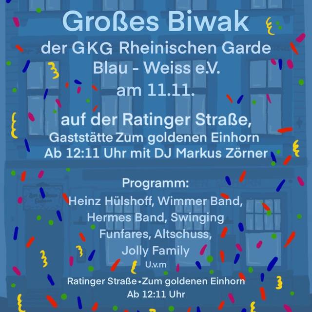 - 11.11.2023: Biwak der Rheinischen Gare auf der Ratinger Straße // in und vor "Zum Goldenen Einhorn"