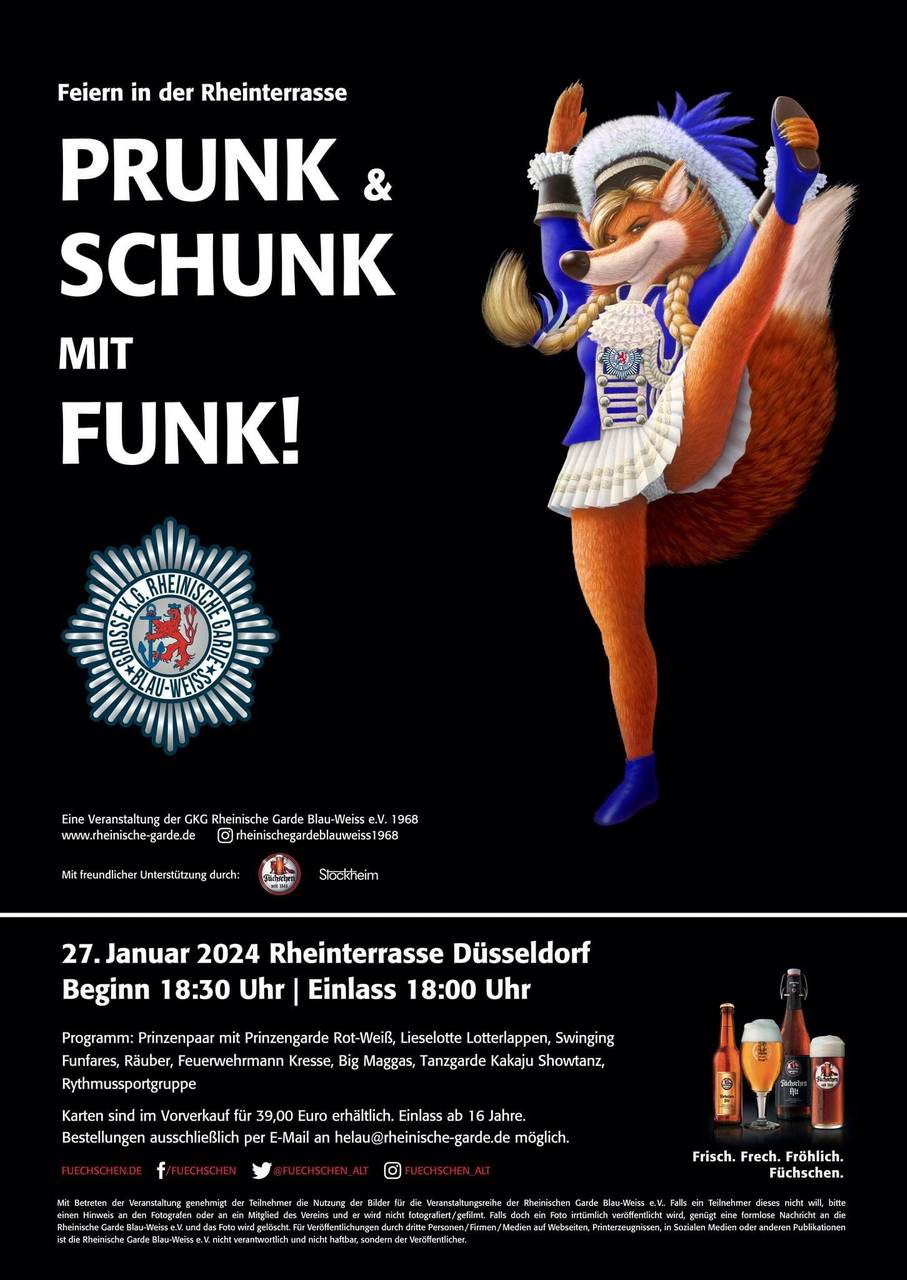 - 27.01.2024: Prunksitzung in den Rheinterassen // Beginn: 18.30 Uhr
