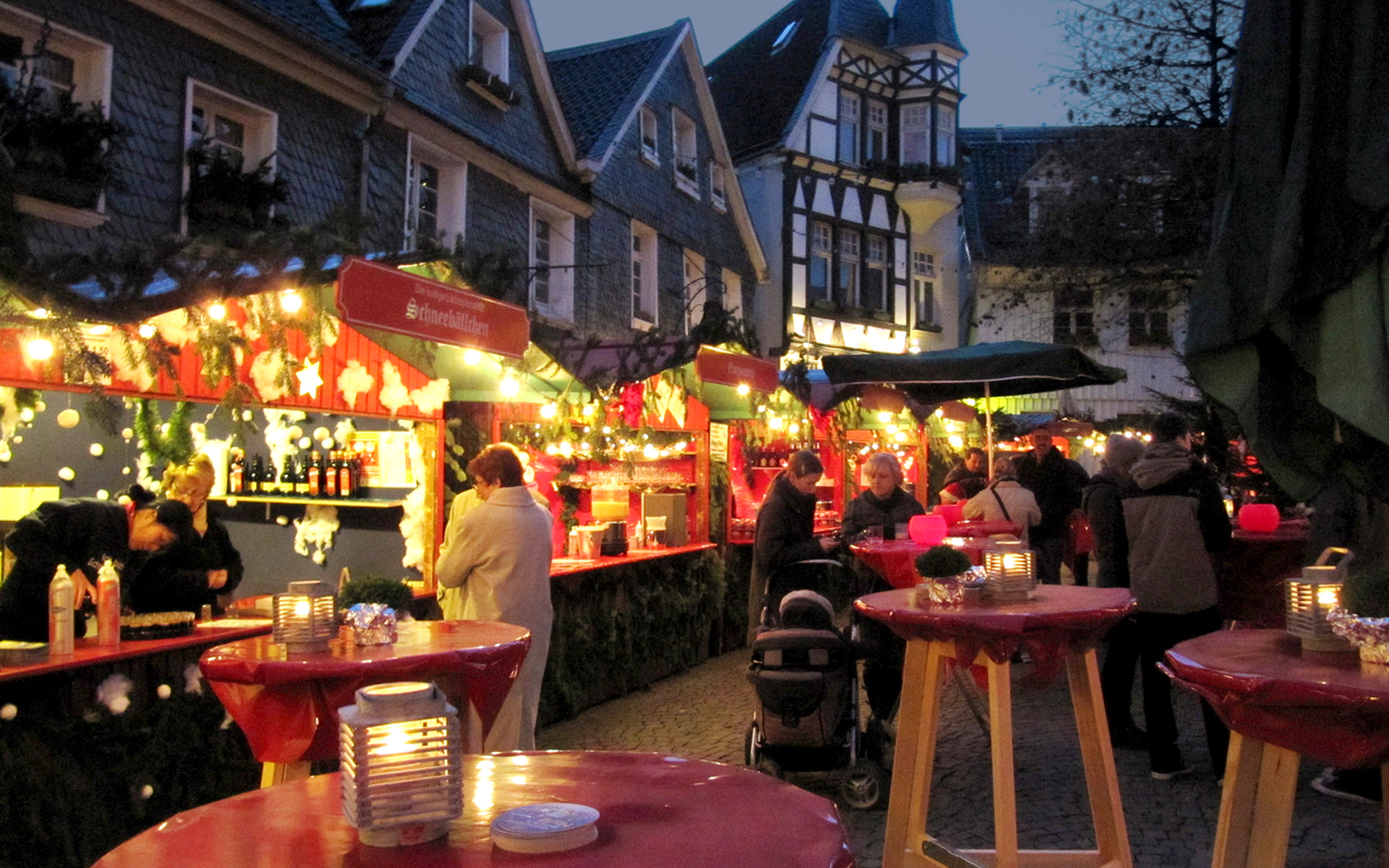 Mittelalterlicher Weihnachtsmarkt - Mittelalterlich und schön wird es zwischen dem 23. November und 22. Dezember in Siegburg zugehen. Dort findet auf dem Marktplatz (rund zehn Kilometer von Bonn entfernt) der mittelalterliche Weihnachtsmarkt statt. Was erwarten Besucherinnen und Besucher? Hölzerne Marktstände, Fackeln und Kerzen, Feuerschalen und alte Ölkerzen ausschließlich als Beleuchtung. Ein handbetriebenes Kinderkarussell gibt es auch. Speis und Trank ist natürlich auch garantiert. Es gibt unter anderem Spanferkel, Waffeln, Speisen aus dem Orient und natürlich Glühwein und Met. Wer sich aktiv zeigen möchte, kann beim Axtwerfen oder Bogenschießen seine Fähigkeiten testen.