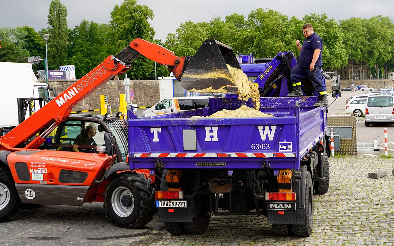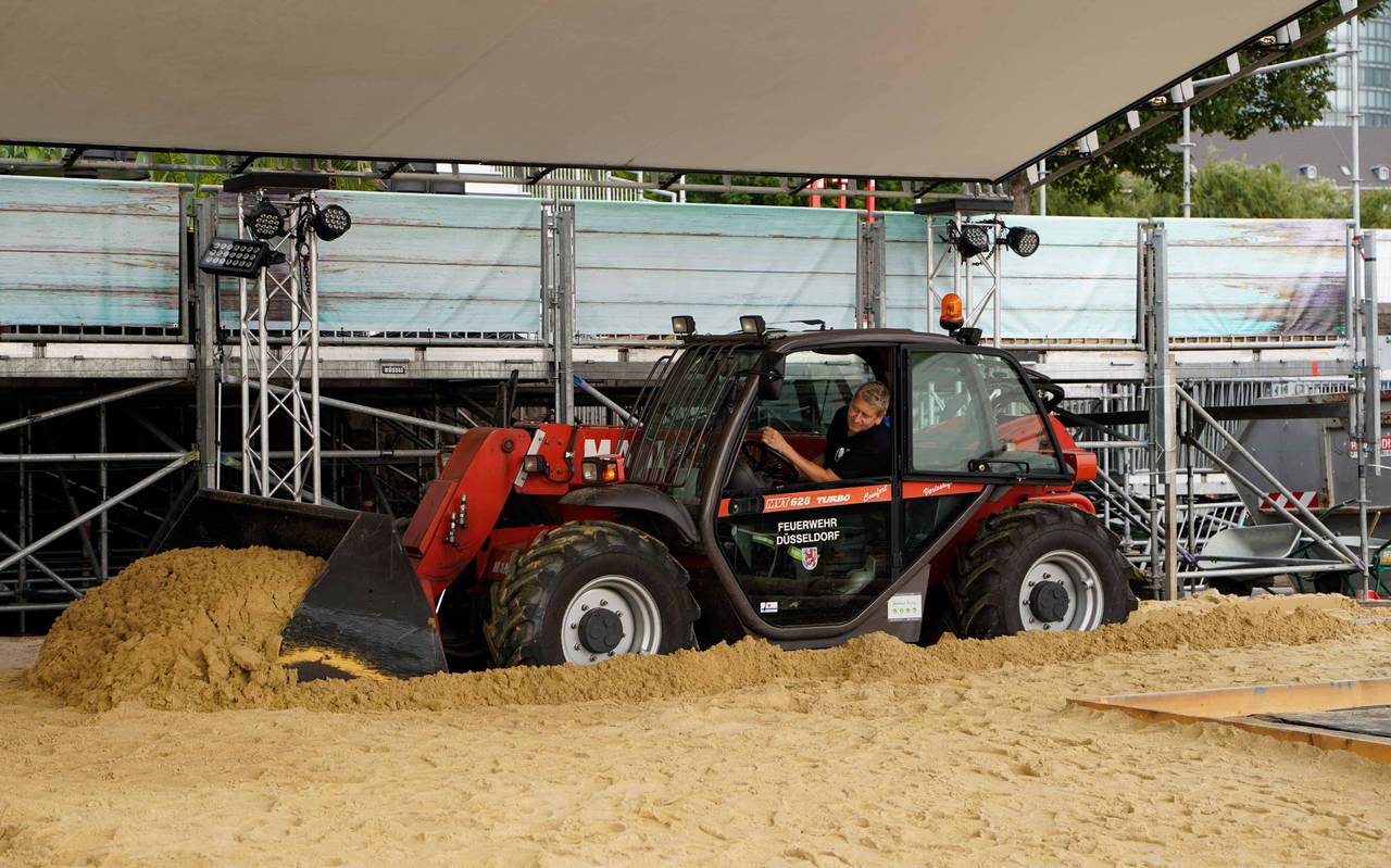 In Folge der starken Regenfälle steigt auch der Pegel des Rheins stetig. Laut Prognosen um rund 2,50 Meter innerhalb von 48 Stunden. Davon ist auch das Gelände des Kinos am Robert-Lehr-Ufer betroffen. Die Fläche des Kinos könnte laut Schätzungen bis zu 30 Zentimeter unter Wasser stehen. Daher hat sich der Veranstalter D.LIVE dazu entschieden, den Start zu verschieben. Die Arbeiten für den nötigen Rückbau des Kinos laufen bereits.Für die Wohlfühloase unter der Leinwand, den Kino Beach Düsseldorf, wurden 100 Tonnen Sand aufgeschüttet. Für diesen Sand gibt es jetzt eine neue Bestimmung: D.LIVE stellt den Beach-Sand für den Hochwasserschutz zur Verfügung. Nach derzeitigem Stand ist die Eröffnung des Kinos nun für kommenden Mittwoch geplant. Bereits gekaufte Tickets behalten ihre Gültigkeit, können umgetauscht oder rückerstattet werden.