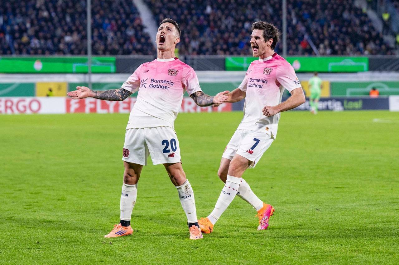 Bayer benötigte einen genialen Freistoß von Álex Grimaldo für den ersten Treffer (60.). Verursacht hatten den Freistoß die Notbremse von Götze, für die er vom Platz gestellt wurde. Stefano Marino köpfte die Gastgeber in der Nachspielzeit in die Verlängerung. Dort wurde es wild: Sven Michel traf erst zum 2:1 für die zehn Paderborner (96.). Dann drehten Jarell Quansah (105.+1), Ibrahim Maza (120.+2) und Aleix Garcia (120.+4) erneut die Partie.