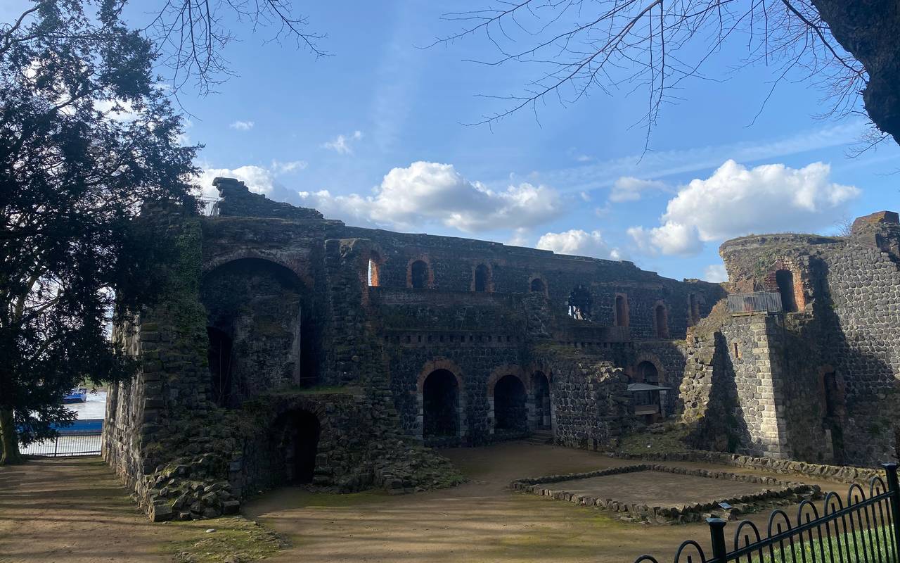 Direkt am Rhein liegt die Kaiserpfalz in Kaiserswerth, ein ehemaliges Durchreisequartier von Kaiser Friedrich I. Barbarossa. Heute steht die Ruine unter Denkmalschutz.