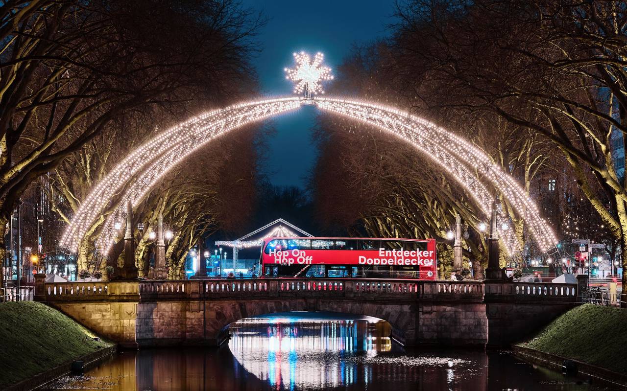 In Düsseldorf verschwindet gleich (20. Januar 2020 // ab 21:00 Uhr) ein beliebtes Fotomotiv aus der Weihnachtszeit: Der Lichtdom über der Brücke an der Steinstraße wird abgebaut.