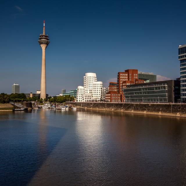Wer heute oder morgen Abend im Düsseldorfer Norden unterwegs ist, kann eine besondere Lichtinstallation erleben. Der Ergo-Turm erstrahlt in verschiedenen Farben.