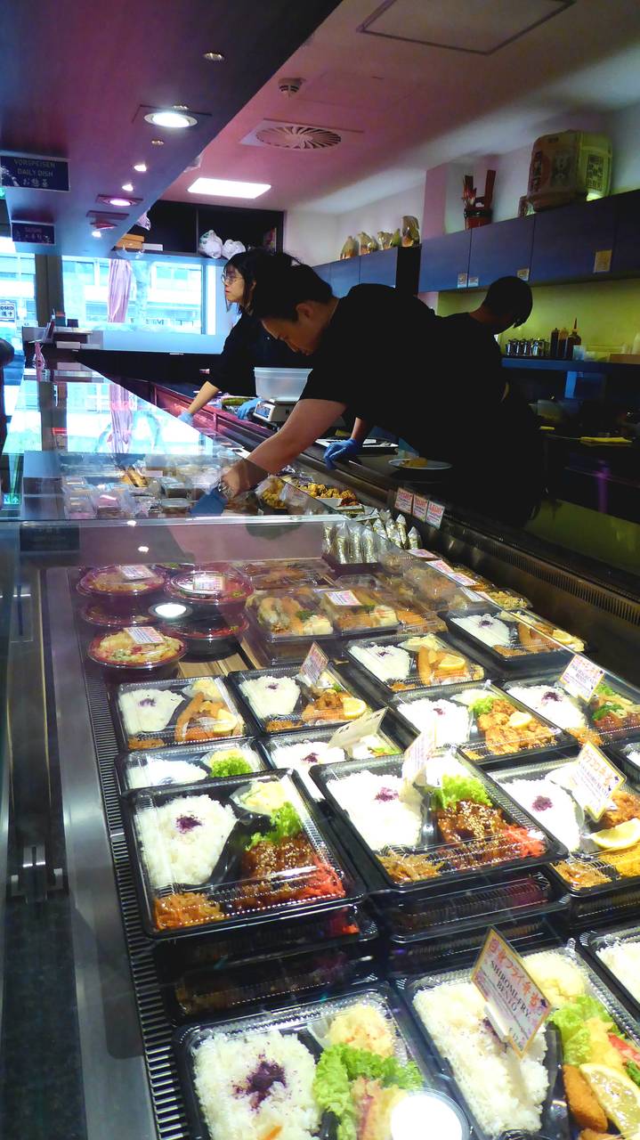 Neben Mangas zieht die meisten Menschen vor allem das gute Essen ins Viertel. Und das lässt sich in drei Kategorien einteilen: Das sind zum einen die Supermärkte, in denen man nicht nur die Zutaten zum Kochen sondern auch fertiges Essen bekommt, wie z.B. Onigiri. Auf der nächsten Stufe gibt es die Ramen-Läden. Das japanische Fast-Food ist heiß begehrt und an einigen Läden stehen die Menschen schon vor Ladenöffnung Schlange. Und auch japanischer Nachtisch wie Taiyaki, Mochi oder Matcha-Eis ist hier zu erwähnen. Zusätzlich gibt es aber auch mehrere hochpreisige Restaurants mit traditionell japanischer Küche, darunter sogar zwei mit Michelin-Stern.