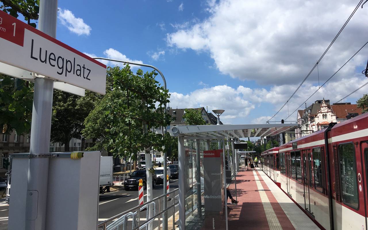 Viele Autofahrer haben am Morgen auf der Luegallee in Oberkassel im Stau gestanden, weil es nur einspurig voran ging. Dort hatte die Rheinbahn gestern die umgebaute Haltestelle "Luegplatz" in Betrieb genommen.