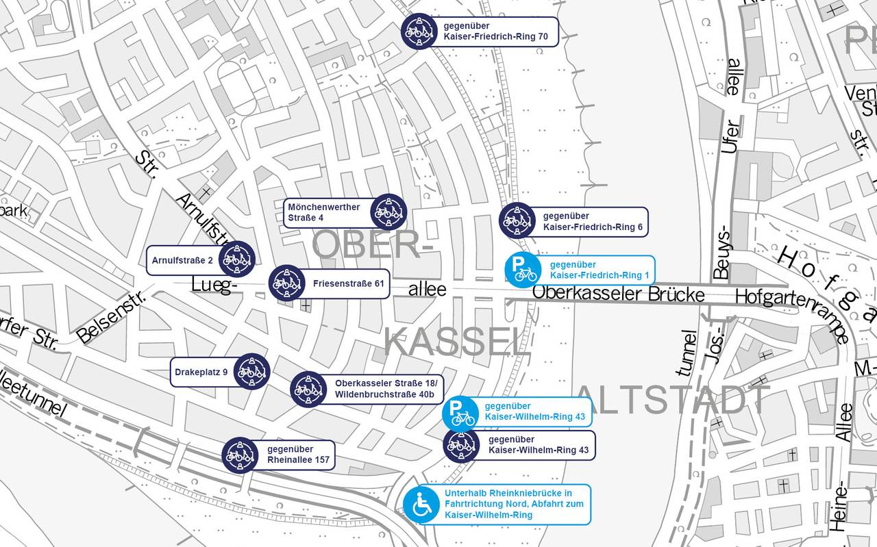 Obwohl es schon seit Jahren unmittelbar in Oberkassel so gut wie keine Parkplätze für die Kirmesbesucher gibt, versuchen viele gerade auswärtige Gäste immer wieder, in den Wohngebieten an der Kirmes zu parken. Hier will die Stadt nun noch aktiver gegensteuern. So wurden diverse neue Park- and Ride Parkplätze geschaffen, unter anderem können Autofahrer im Vodafone- oder Provinzial Parkhaus kostenlos an den Wochenenden parken und von dort aus im zwei Minuten Takt mit der Rheinbahn zur Kirmes fahren. Neben dem ÖPNV setzt die Stadt auch aufs Fahrrad – entweder aufs eigene der Kirmesbesucher oder diverse Sharing-Radanbieter.