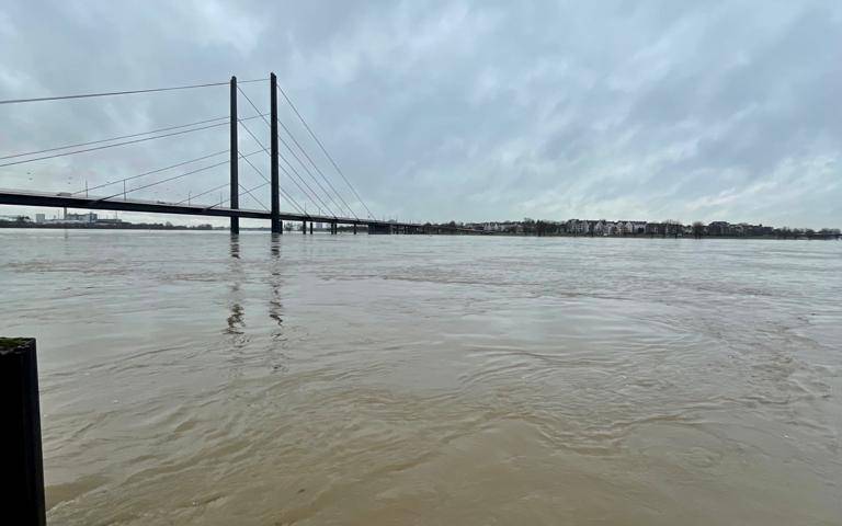 Das sind etwa 30 Zentimeter mehr als gestern um diese Zeit. Die Lage sei aber nicht dramatisch, heißt es von der Hochwasserschutzzentrale in Köln. Das sei ganz normales Winter-Hochwasser. Die Stadt Düsseldorf hat in dieser Woche trotzdem einige Schutzmaßnahmen ergriffen. So ist die Stromleitwand unter der Theodor-Heuss-Brücke aufgebaut worden. Diese soll den Yachthafen vor Treibgut schützen. Zuvor waren bereits der Durchgang von der Unteren Rheinwerft zur Altstadt verschlossen, die Parkplätze am Tonhallen- und Robert-Lehr-Ufer gesperrt und die Sportfläche unter der Theodor-Heuss-Brücke abgebaut worden. Die Experten erwarten keinen deutlichen Anstieg mehr. Vermutlich werde der Scheitelpunkt bald erreicht und der Pegelstand nach dem Wochenende wieder sinken.