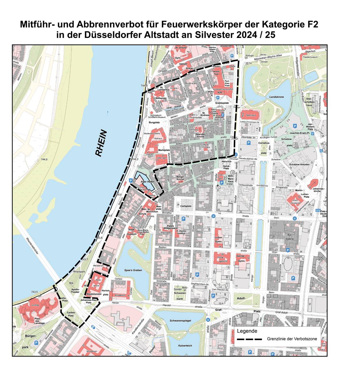 Im vergangenen Jahr hatten sich die meisten Altstadtbesucher an das Böllerverbot zu Silvester gehalten. Es gilt auch in diesem Jahr von 20 Uhr abends bis zum Neujahrsmorgen um 6 Uhr. Erlaubt ist dann laut der Stadt lediglich das sogenannte "Jugendfeuerwerk". Also zum Beispiel Wunderkerzen und Feuerwerkskörper, die das ganze Jahr über auch von 12-jährigen gekauft werden dürfen. Die Verbotszone liegt zwischen der Ratinger Straße, der Heine-Allee, der Flinger Straße und der Kniebrücke.